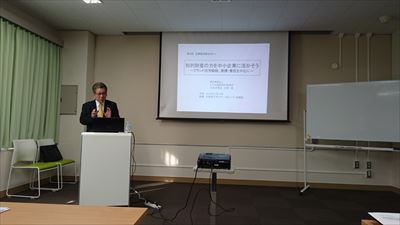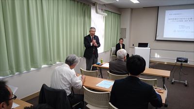 セミナーでは冒頭、梶原徳二東商議員が開会のあいさつを行った後、講師の水野氏((業)コスモ国際特許事務所・所長・弁護士)から企業活動における特許・実用新案・意匠・著作権について身近な商品や事例を用いて知的財産権の重要性についてわかりやすい説明がありました。