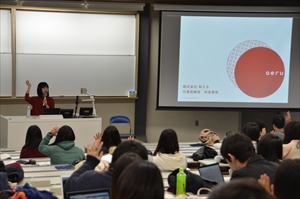 東京商工会議所 中小企業委員会(委員長=大久保秀夫・フォーバル会長)は12月21日、慶應義塾大学にて株式会社和えるの矢島里佳社長を講師にお招きし、起業家セミナーを開催しました。本セミナーは、学生に創業をより身近に感じてもらい、アントレプレナーシップを醸成することを目的に、本大学商学部の髙橋美樹教授にご協力いただき、担当授業の一環として開催しました。