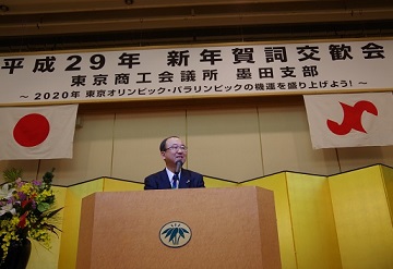 東京商工会議所墨田支部(会長=阿部貴明・丸源飲料工業㈱ 社長)は1月19日(木)に、東武ホテルレバント東京において「平成29年新年賀詞交歓会」を開催しました。