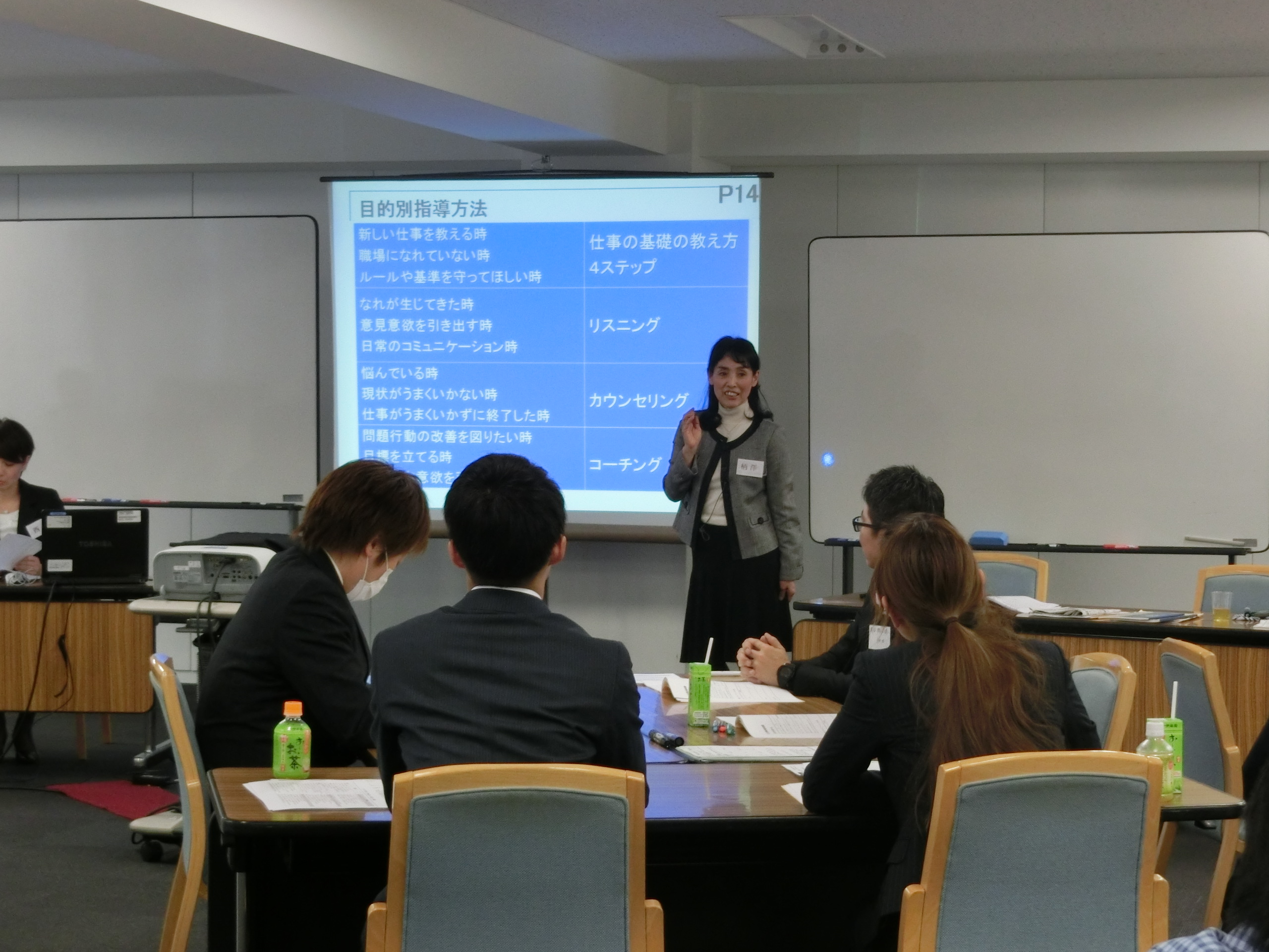 後輩指導のための、職場の受け入れ準備、後輩タイプ別の指導とフィードバック方法、後輩への支援とメンタルヘルスへの知識と対処法について、グループ討論やロールプレイングを通して実践的に学びました。