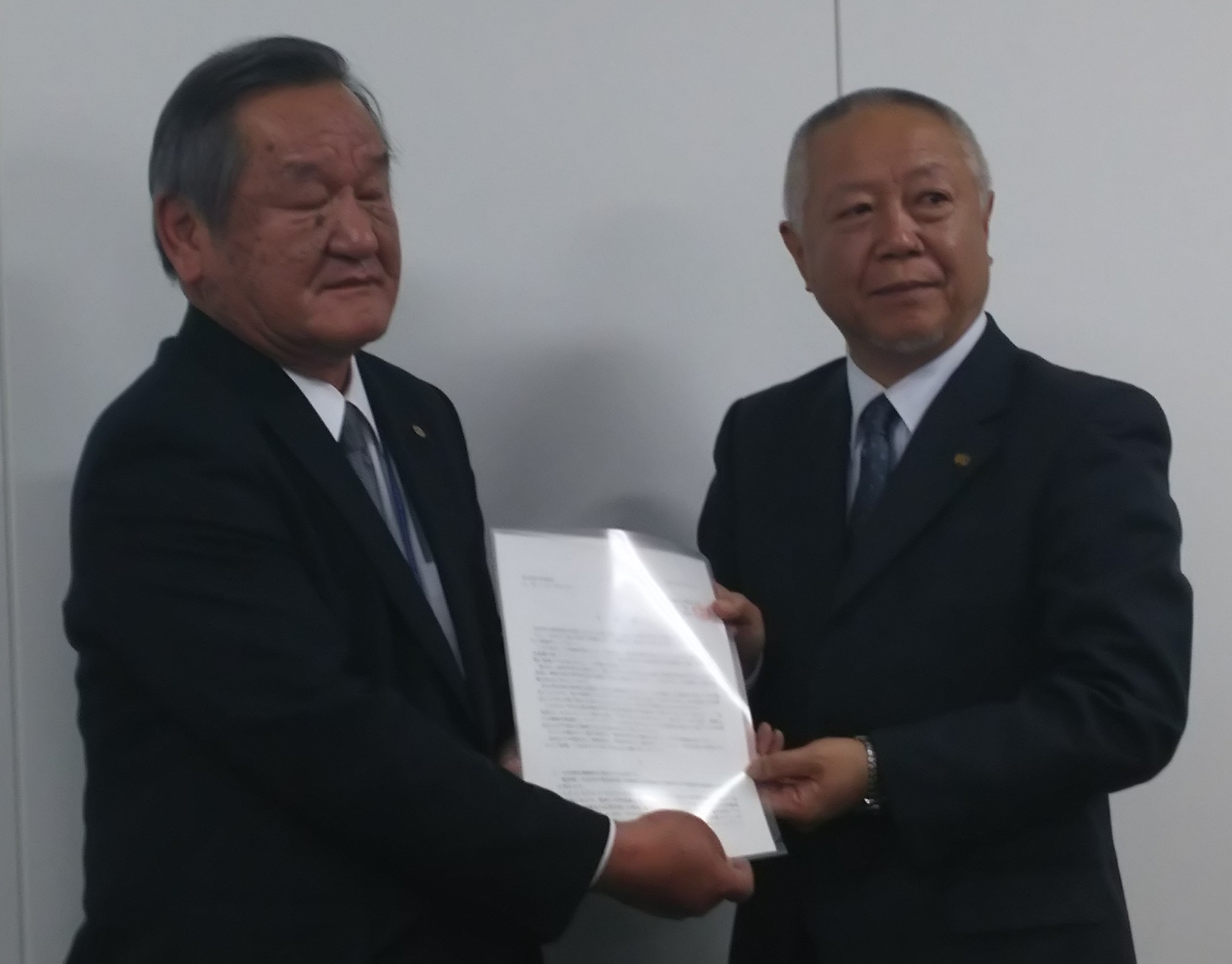 岡田 連合東京会長からご挨拶いただいたのち、連合東京がとりまとめた、春季生活闘争等についての要請書手交を行いました。