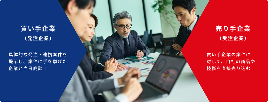 製品・技術の売り買いに関する商談会です。